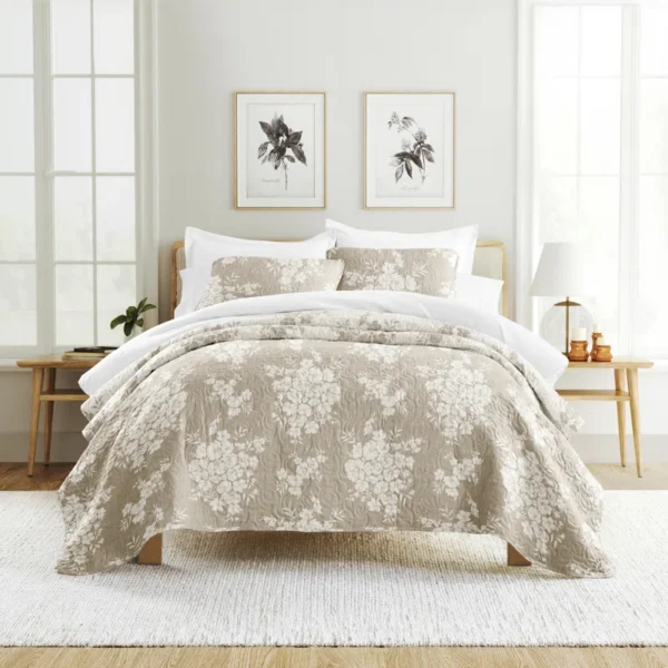 This inviting, floral quilt set has a fabulous style that stands alone, but it’s also a great piece for layering for a fully styled design-inspired look in your master suite or guest bedroom.